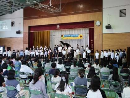 本日は学習発表会を開催します。午前中は体育館で英語スピーチ、3年音楽、生徒会本部、3年ダンス、相模人形クラブ、吹奏楽部が発表します。午後は体育館でにじうたコンサートがあり、各学年と各クラスと有志の合唱が披露されます。