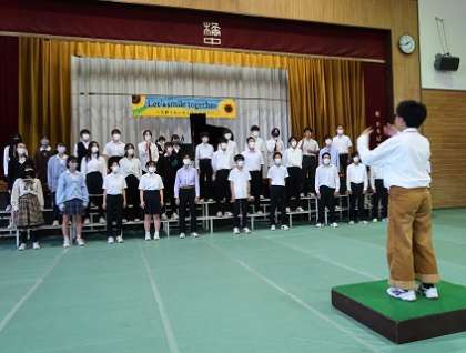 本日は学習発表会を開催します。午前中は体育館で英語スピーチ、3年音楽、生徒会本部、3年ダンス、相模人形クラブ、吹奏楽部が発表します。午後は体育館でにじうたコンサートがあり、各学年と各クラスと有志の合唱が披露されます。