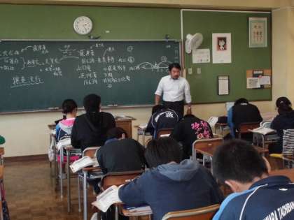 写真は左から1組・2組・3組です。1組は社会科の授業、2組は英語の授業、3組は技術科の授業です。技術科では防災用を兼ねたラジオをつくりました。いい音が出ます。