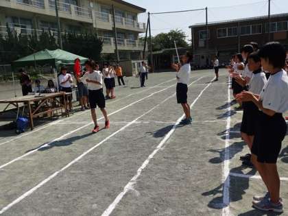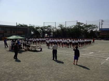 晴天の下、運動会の予行練習が始まりました。明後日の本番に向けて、選手も役員も一生懸命に動いて、確認しています。明後日はいい運動会になりそうです。