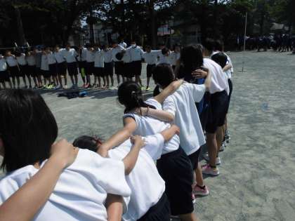 赤、黄、緑の3ブロックでの運動会が明後日行われます。予行ではありながら、3ブロックとも接戦で、本番そのものといった内容でした。また各ブロック長から、各種目のアドバイスや、士気を高める為の声のかけ合いをしてくれていました。また、ブロック全体で円陣を組み各学年が1つのチームにまとまりました。本番が楽しみです。
