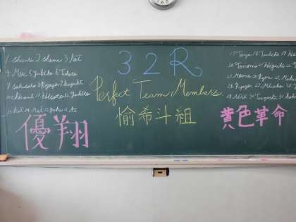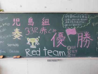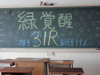 5月20日(金)、3,4時間目は運動会練習、午後は会場準備で、ライン引きや、机、イス、テントの準備、最後は万国旗を掲げて準備完了!写真は、3年生の教室の風景です。クラス全員の名前が黒板に書かれ、クラスの想いが書かれていました。さあ、明日は本番です。良い運動会になるといいですね。保護者、地域の方々是非、見に来て下さい。