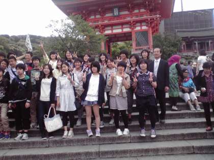 いよいよ最終日、ホテルを出てバスで銀閣寺そして清水寺の見学です。清水寺ではやっとクラス全員そろって集合写真を撮影することが出来ました。心配された天気もなんとかもってくれています。清水では清水焼きの絵付けも体験しました。