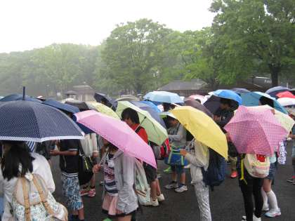 前半は霧雨のなかでの活動でしたが、お昼前には雨もやみ、外で昼食をとる計画を立てていた班も予定通り実行でき、仲良くおいしそうに食べることができました。