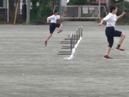 ハードルの授業終了後、後片付けをしています。「1人1個片付けましょう」という指示の中、1人で2個、2人で3個片付けている生徒がいました。嬉しい姿ですね。ハナマル。