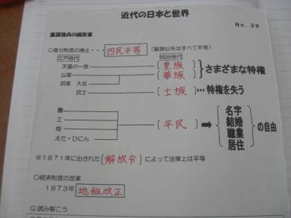 公民の授業が行われていました。昔の資料を興味深く見ていました。どこからこの資料を手に入れたのでしょう。○○さんは、カメラ好き。