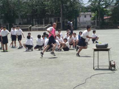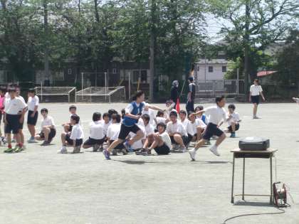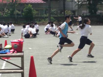 学年練習が始まりました。写真は、全員リレーの練習の様子です。練習とはいえ、真剣です。応援の声をのせられないのが残念です。