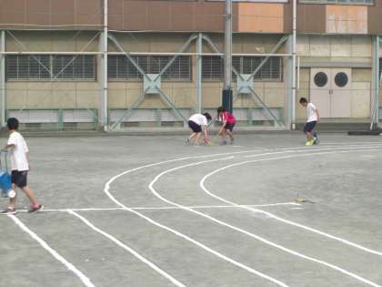 運動会は、体育委員会が中心になって企画、運営がなされています。本番当日の成功のために明日は予行練習です。予行のために、ライン引きをしたり、道具の確認をしたりと大忙しです。あなたたちのおかげで運動会ができます。ありがとう。