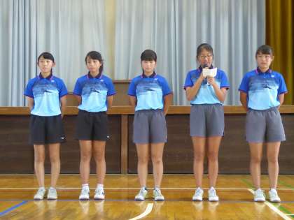 男子団体戦は残念ながら1回戦、個人戦は女子が2回戦、男子が3回戦まで進みました。台風の影響も受けた酷暑の中での「橘中チャレンジ!!」でした。