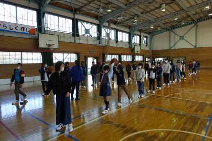先生方のお話を聞いたあと、体育館でボール渡しのレクリエーションが始まりました。