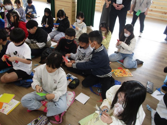 2月24日(火)に、総合の「大雄山線プロジェクト」の一環として、大雄山線ものがたりの切り絵を制作されている切り絵作家の水口さんから切り絵を教えていただきました。10年後の自分に思いを馳せて、人型の切り絵やメッセージを制作しました。教えていただいた様々な技術に対しても、積極的に挑戦しようとする姿にあふれています。休憩時間などにも一生懸命練習し、それぞれ気持ちのこもった切り絵を作ることができました。