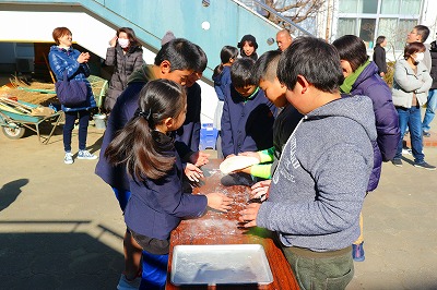 1月26日に5年生の学習参観があり、子どもたちが育てたもち米でもちつき会を行いました。