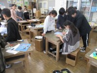 1月30日(金)、3年生は、穴の空いた段ボールに絵を描き、顔を出したパネルを制...