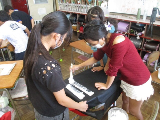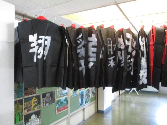 10月2日(木)、6年生は運動会で踊るときに着用する法被に一人ひとりが思いを込めた文字を入れました。運動会まで2週間、踊りの衣装もできると、さらに気持ちが高まってきますね。ご家庭では、どんな漢字にしたのか?なぜその文字を選んだのか?などお子さんに聞き、小学校生活最後の運動会に向けての意気込みを高めてほしいと思います。