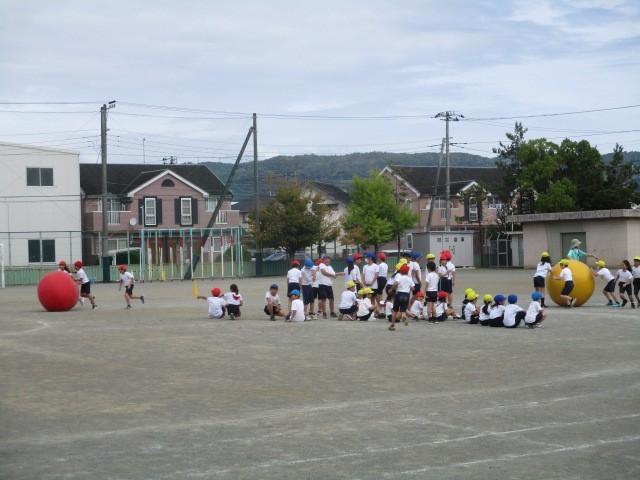 10月7日(火)、3.4年生は大玉協走の練習をしていました。入場から退場まで通しての練習でした。各色とも前回より転がし方が上手になりスピードアップした気がしました。本番でも練習でも何が起きるかわからないのが大玉転がしです。3・4年生で協力して頑張ってほしいです。