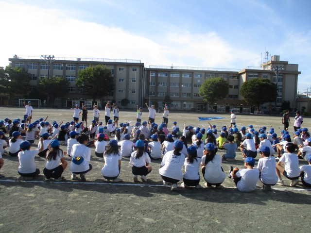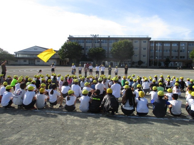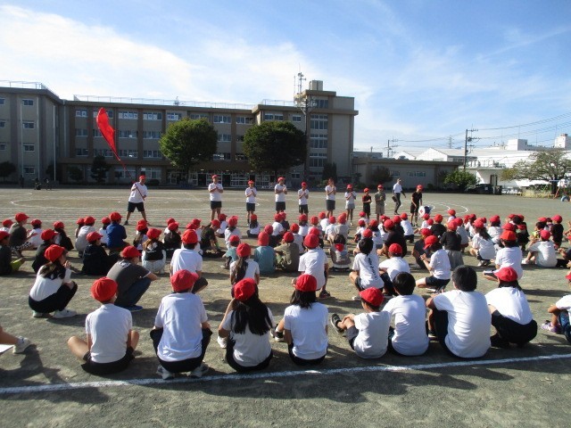 10月8日(水)朝の時間、全校児童が運動場に集まり、各色ごとに応援練習を行いました。応援団のたくましい声かけにしっかりと応え、応援の声が響いていました。運動会を盛り上げる応援です。みんなで力を合わせ運動会を盛り上げてほしいです。