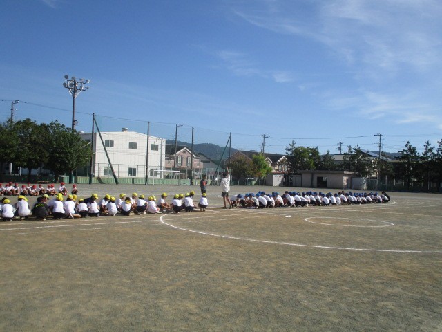 10月8日(水)、5・6年生は綱引きの練習をしました。今日は、実際には綱を引かず、入場や移動の仕方など動きについて確認していました。さすが高学年です。先生の指示をよく聞いて、すぐに行動に移しています。本番では、力強く・たくましく・勢いよく綱を引く姿を期待したいです。