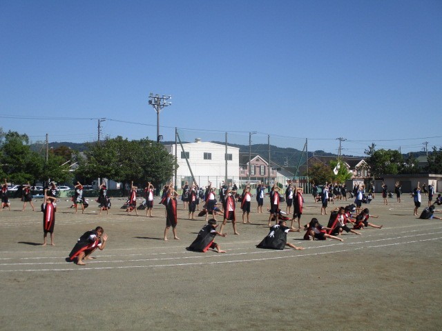 10月17日(金)、5・6年生も運動会に向けて最後の練習をしました。明日に向けて気合が入ってきたようで力強さ、たくましさを感じました。練習の終わりには、明日に向けてみんなで気持ちを高めていました。明日はさらに気合の入った踊りが見られると思います。楽しみです。