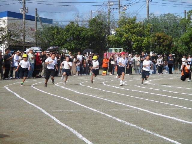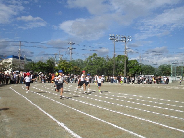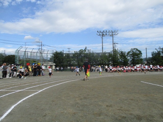 プログラム2番、3年生による「80m曲走」です。進級して80mにチャレンジでした。最後までしっかりと走り抜けることができました。