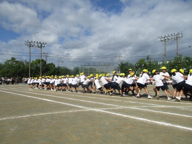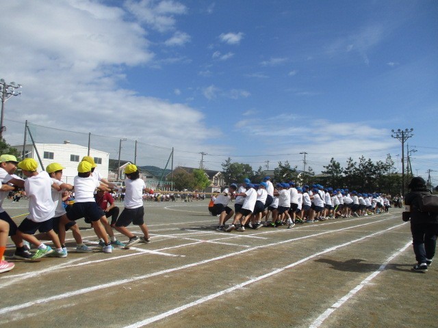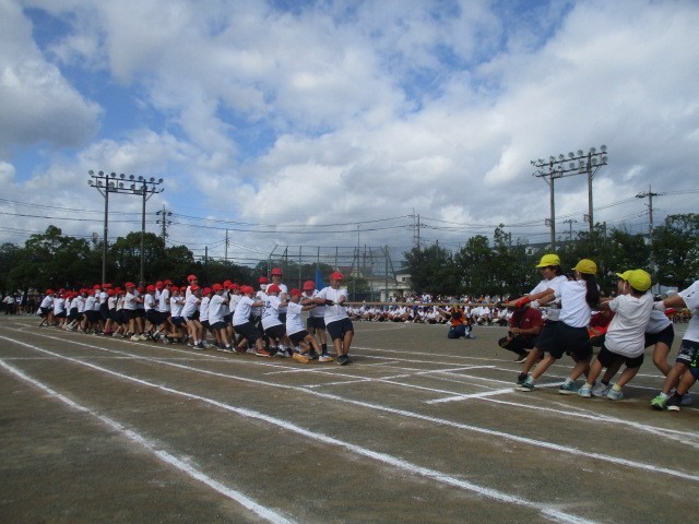 プログラム7番、5・6年生による「いつ引くの?今でしょ!」です。真剣な表情で自分の持っている力を出し切りました。さすが高学年、迫力があります。勝った赤組、おめでとうございます。