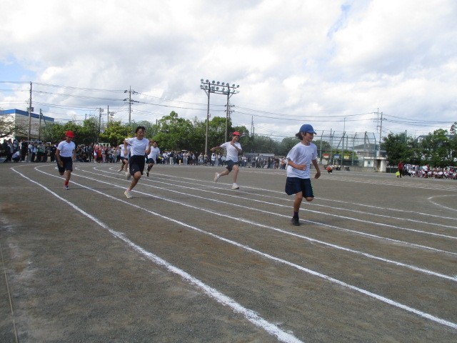 プログラム10番、6年生による「栄光のラストラン」です。小学校生活最後の100m走。ゴールめざして力強いたくましい走りを見せてくれました。