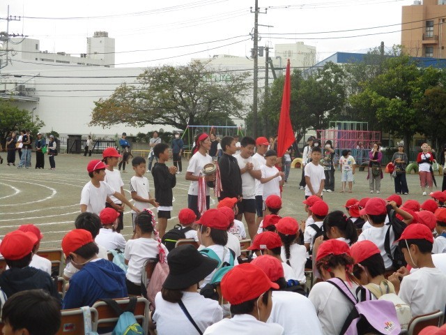 解団式の様子です。各色の応援の中心として活躍した応援団の解散です。演技中、選手の背中を押す声を届けてくれた応援団です。どの色もよく頑張り、運動会全体を盛り上げていました。すばらしかったと思います。