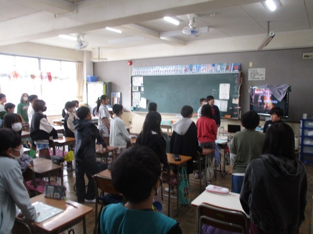 10月28日(火)、5年生は宿泊学習のキャンプファイヤーで歌う歌の練習をしていました。明後日が本番で、天気予報は晴れです。野外で盛り上がり、心から楽しさあふれ、元気いっぱいの声を響かせてほしいです。