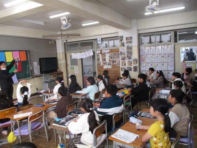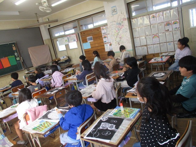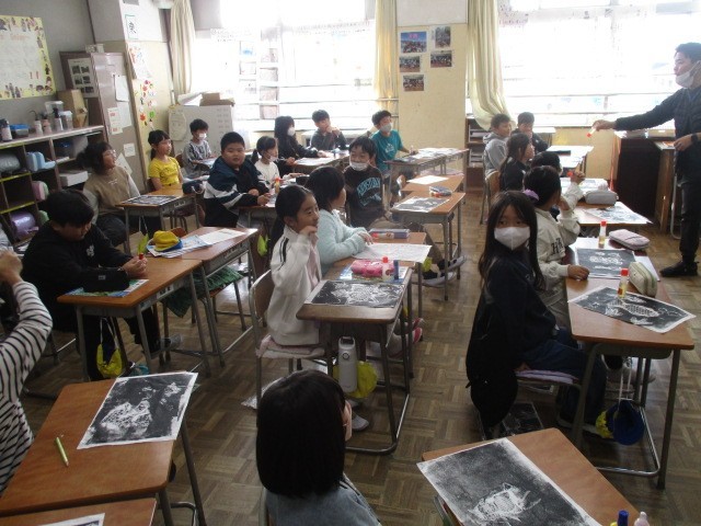11月7日(金)、3年生は完成した版画を台紙に貼るようです。版画は、白黒のコントラスト、濃淡、模様など版画のおもしろさを生かした作品が見られ、すばらしいと思いました。どんな色の台紙に自分の作品を貼ると、映えるのか?悩みますね。いろいろな色の台紙が黒板に掲示されていました。