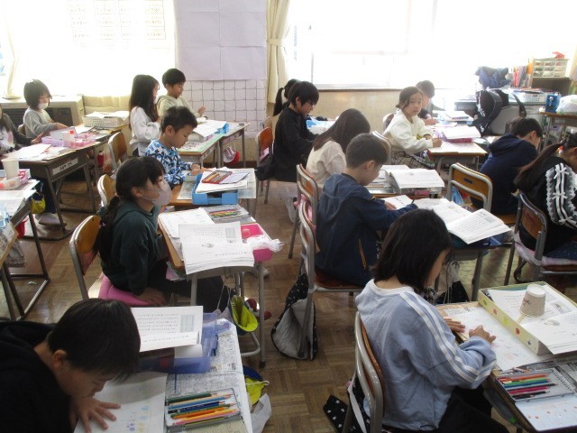 11月27日(木)、2年生は楽しそうに色鉛筆で紙に模様を描いていました。聞くと、花火のデザインをしていました。描いたデザインを使って紙コップ花火を作成するようです。完成が楽しみですね。