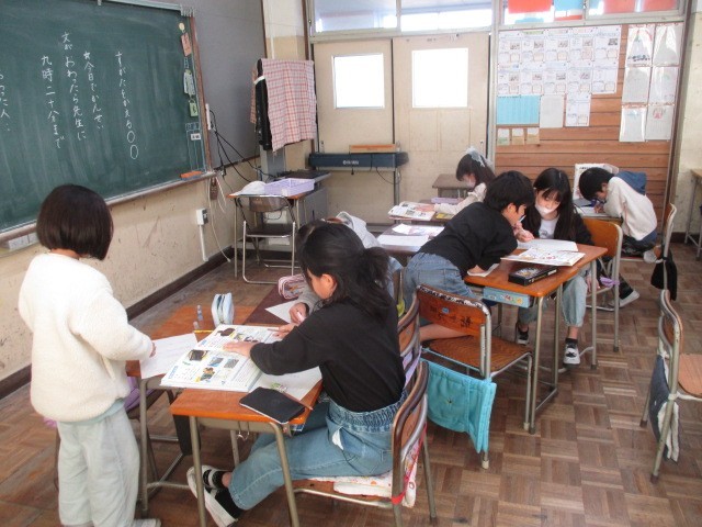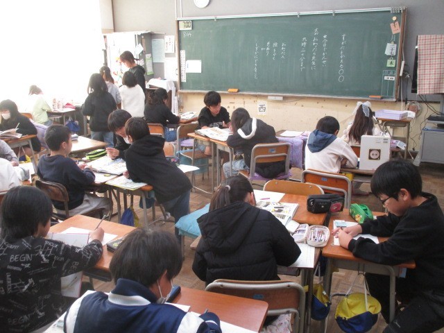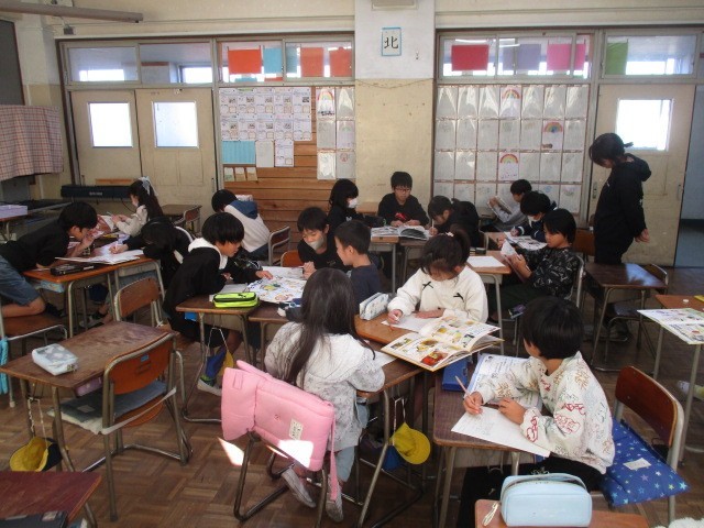 11月27日(木)、3年生は本を使って調べていました。肉や魚、果物などは加工のしかたによって姿が変わります。普段の生活の中でも食べていることが多いですね。原材料を知らないこともあるかもしれません。いろいろ調べてみると、食に関する興味が高まりますね。