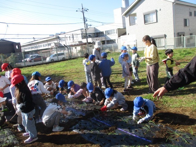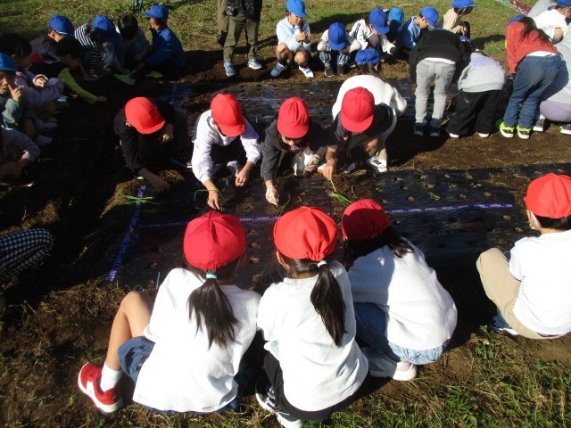 11月28日(金)、1年生は、下中地区で玉ねぎの栽培をしている方にご指導をいただきながら玉ねぎの苗付けを行いました。割り箸で土に穴をあけて苗を植えました。細い苗から大きな玉ねぎができます。春の収穫が楽しみですね。