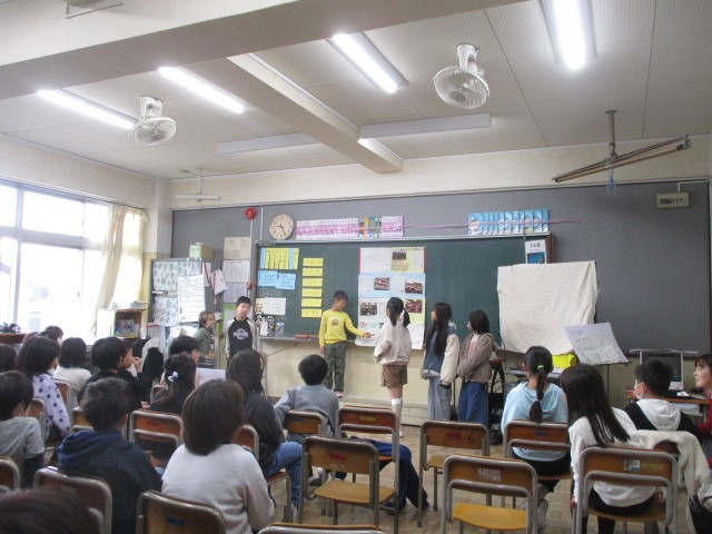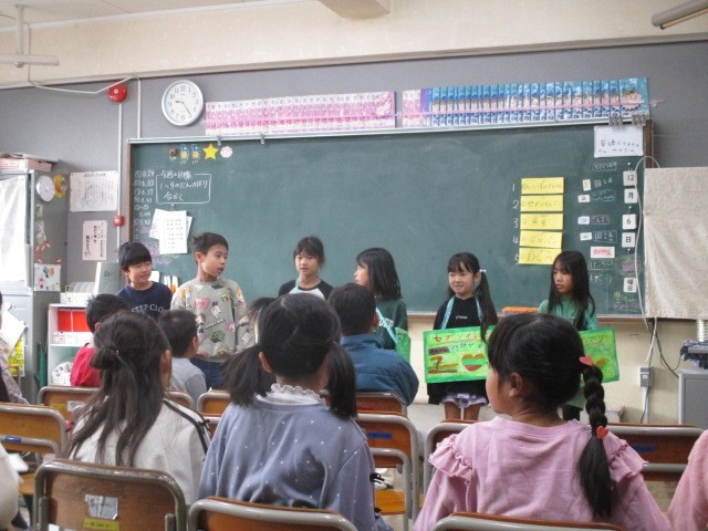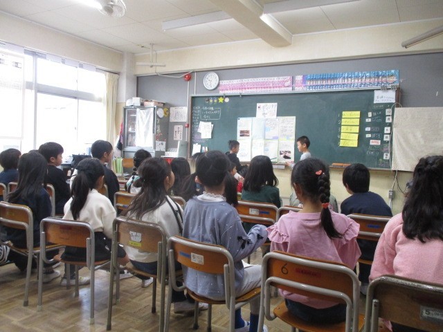 2年生は、町探検の発表会でした。見学した施設の見たこと聞いたこと感じたことなどをまとめ、発表しました。楽しそうに発表したり質問に答えたりしていました。協力してよくできていました。