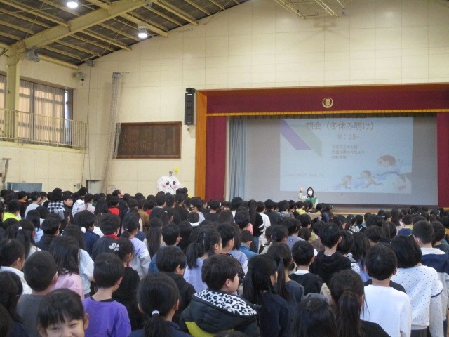 1月8日(木)、冬休みが終わり豊川小学校に豊川っ子の元気な声が戻ってきました。朝、朝会がありましたが、開始時刻前にみんなが体育館に集合し整列し、そして開始まで静かに待つことができ、大変すばらしいと思いました。教務の先生からも褒められていました。
