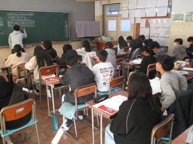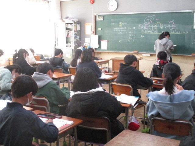 1月9日(金)、6年生は算数で反比例の学習でした。面積が24c㎡の長方形の面積の横の長さと縦の長さの関係を調べていました。「きまった数」など比例との関係の違いにも気を付けながら学習が進められていました。