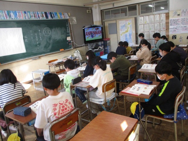 1月9日(金)、5年生は国語で教科書に掲載されているやなせたかしさんの自伝の音声を集中して聞いていました。有名なアンパンマンの作者であるやなせたかしさんのアンパンマンを通して伝えたい思いをしっかりと読み取ってほしいですね。