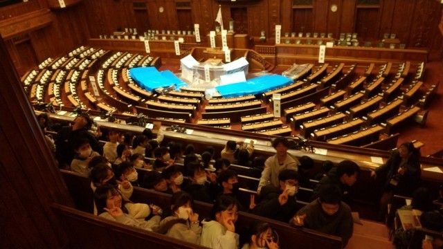 豊川に選挙事務所がある衆議院議員の方からお話を聞いたり質問に応えたりしていただきました。子どもたちの質問に丁寧に応えていただき、本当にありがとうございました。そして国会議事堂内にある衆議院議場に入り説明を聞きました。