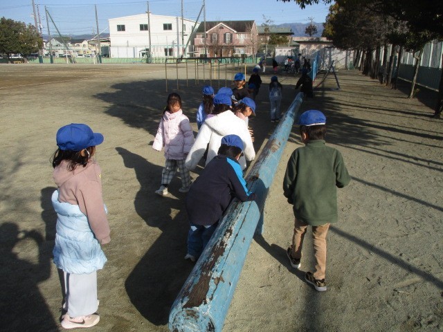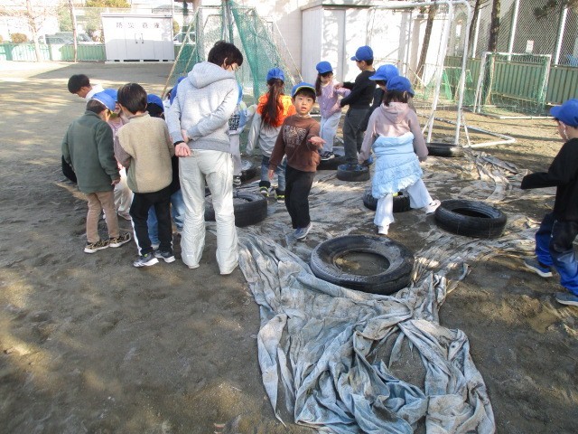 1月30日(金)、今日は冷え込んだ朝でした。そして、1年生は校庭に出て、氷を見つけに行きました。丸太の上、タイヤの上、そして落ち葉を拾うと・・・。霜がしっかりついています。冷たいのに、楽しそうに触っていました。子どもは元気ですね。