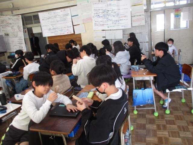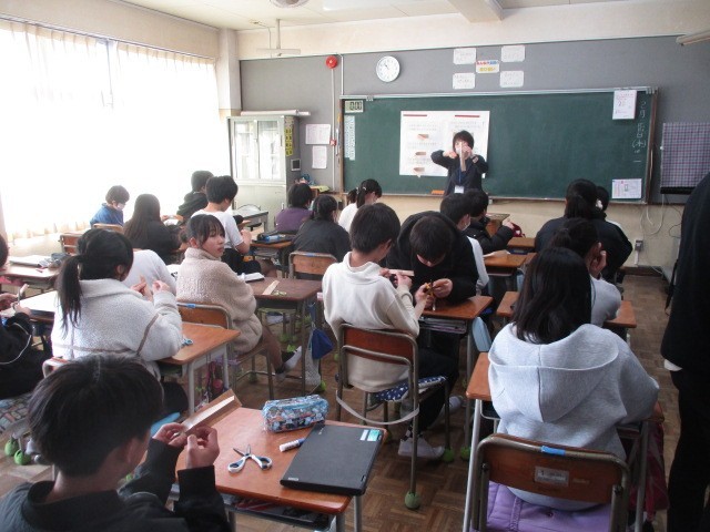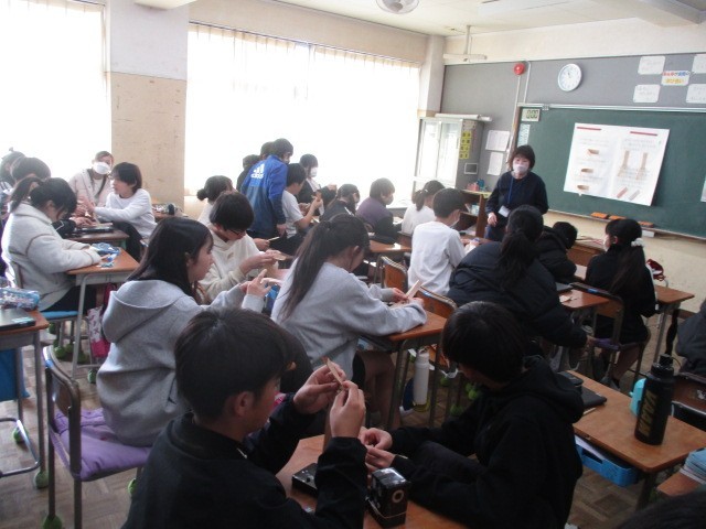 2月18日(水)、6年生は、はさみを使って紙に切れ込みを入れていました。対称な形が見えてきました。向きを間違えたり、切り方を失敗したりすることもあったようですが、まだチャレンジできる機会があります。すてきなしおりができるといいですね。