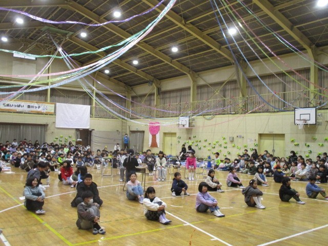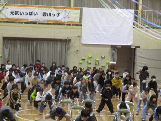 3年生の出し物です。6年生の素晴らしい姿を替え歌で披露しました。そして、6年生が運動会で踊った思い出のソーラン節を3年生がたくましく踊って見せました。