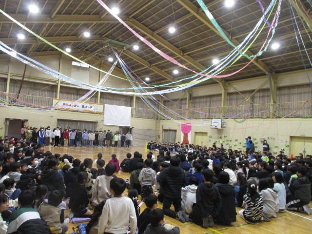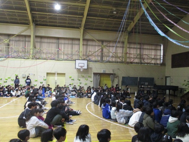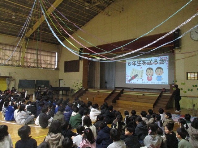 5年生の出し物です。入学したころから今に至るまで懐かしい6年生の姿をスライドにして紹介しました。思わず笑顔になっている6年生でした。6年間の成長や出来事を思い出すことができました。また、各学年にインタビューし、6年生のすばらしいところも紹介していました。