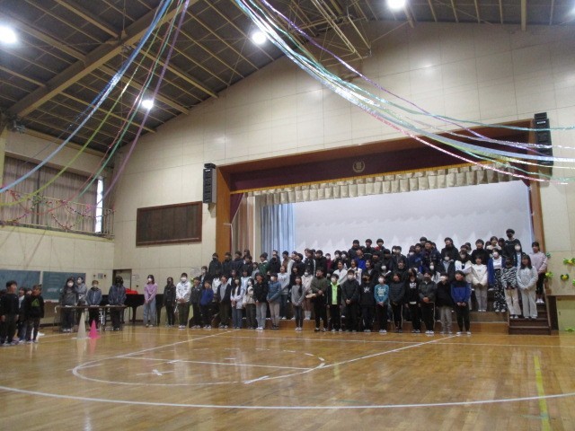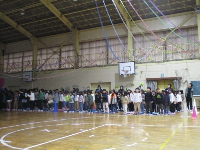 各学年の出し物の後は、全員合唱です。曲は「YELL]でした。6年生と一緒に歌う全員合唱はこれが最後です。みんなの心が一つになった合唱でした。