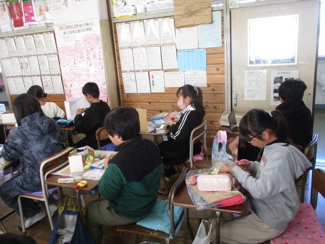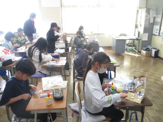2月26日(木)、5年生は集中して作業をしていました。背景にミラーがあり、そこに映る世界も含めたミラクル!ミラーワールドを制作していました。海の中、海に浮かぶ島の世界など想像を膨らませながら制作活動に取り組んでいました。