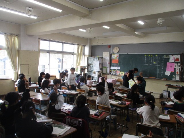 3月10日(火)、2年生は国語の物語文「スーホの白い馬」について学習していました。今日は「オオカミが来た場面」のスーホや白い馬の行動を本文から読み取っていました。発表した人が次の人を指名しながら発言をつないでいました。