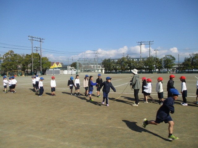 3月12日(木)、1年生は、全員で長縄跳びにチャレンジしていました。前の子が跳んだあとにタイミングよく動き出して跳べる子もいました。みんなでリズムよく跳べるように頑張ってほしいです。そのあとは、みんなでドッジボールを楽しんでいました。