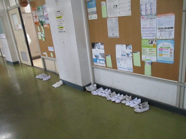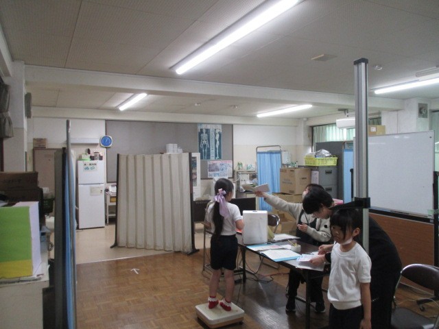 4月7日(火)、新年度が始まり身体計測が行われました。はじめは3年生からでした。身長体重を測り、健康手帳に記入します。昨年4月に比べ、どのくらい伸びているか?楽しみですね。落ち着いて検査を受け、そしてうわばきがきれいに並べられていたことはすばらしかったです。
