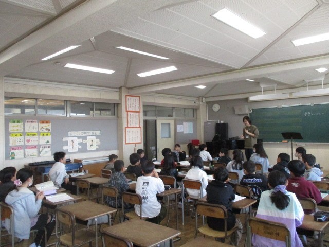 4月8日(水)、5年生も先生の話を聞いて、学習していました。机上には地球儀もあり、世界に目を向ける学習も始まりますね。