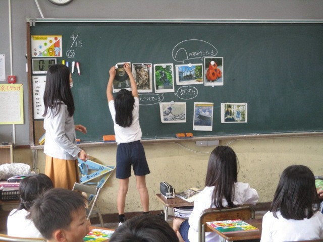 4月15日(水)、4年生は図工で有名な絵や銅像、オブジェなどの作品を見て、似ているところを探していました。硬さ、形、ごつごつかんといった表面の様子など作品の写真から感じられるイメージを考え、発表していました。感性が豊かになりますね。