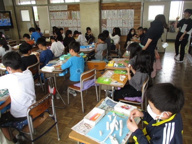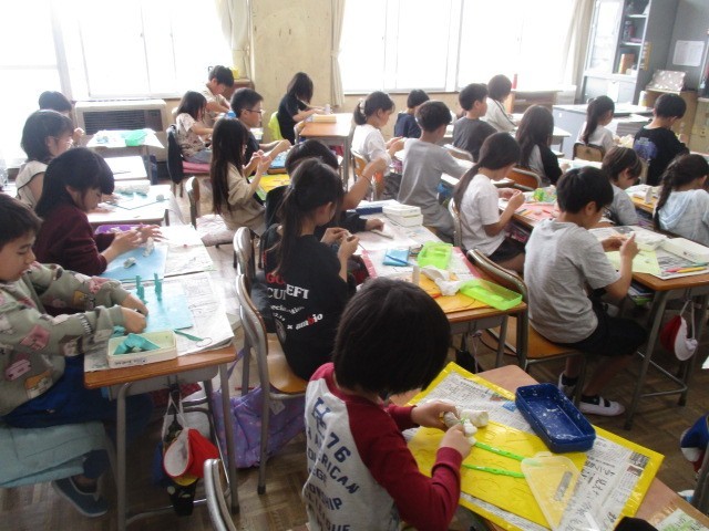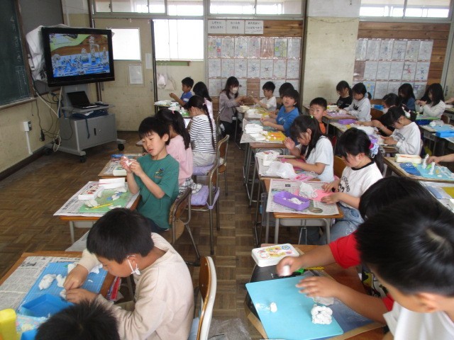 4月15日(水)、3年生は集中して作業していました。見学すると粘土で自分のイメージした町を表現していました。恐竜がいたり観覧車があったりと興味のある町が粘土で形作られてきました。未来の街を想像できて楽しそうでした。