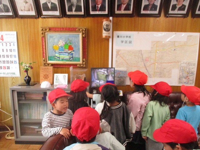 4月22日(水)、校長室に1年生が学校探検に来ました。初めて入る校長室にあるものを見て、喜んでいました。喜び一番は、ソファに座って嬉しそうでした。最後には、「ありがとうございました」「しつれいしました」とあいさつもしっかりできて、すばらしいと思いました。