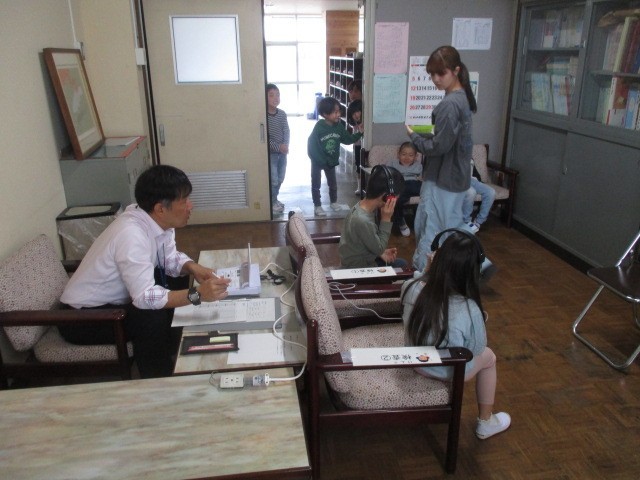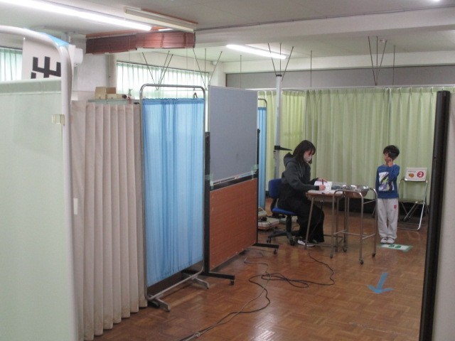 4月24日(金)、1年生は小学校になってはじめて視力・聴力検査を受けました。はじめての検査に緊張しながらも視力検査では、指もつかって方向を示したり、聴力検査では音が聞こえるとボタンをしっかりと押したりしていました。